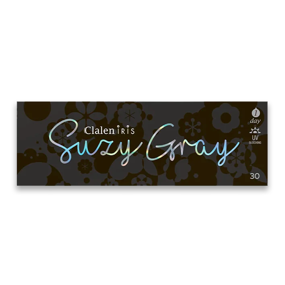 Clalen Iris 1 Day Suzy Gray daily colored contacts feature a smoky gray gradient with delicate limbal ring and a 12.9 mm graphic diameter for natural enlargement. Crafted in Methafilcon A hydrogel (55% water) with HD Vision Design, Sodium Hyaluronate, and UVA/UVB blocking for clear, comfortable wear.