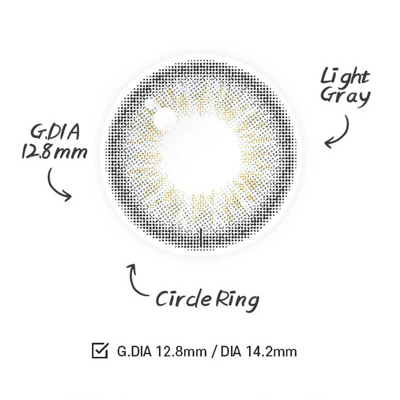 Clalen Iris Toric 1 Day Halo Gray daily disposables combine a stable prism ballast toric design with a layered three-tone gray gradient and a 12.8 mm graphic diameter (14.2 mm total) to gently enlarge and deepen your eyes. Made from 55% hydrogel (BC 8.6 mm) for breathable, all-day comfort.