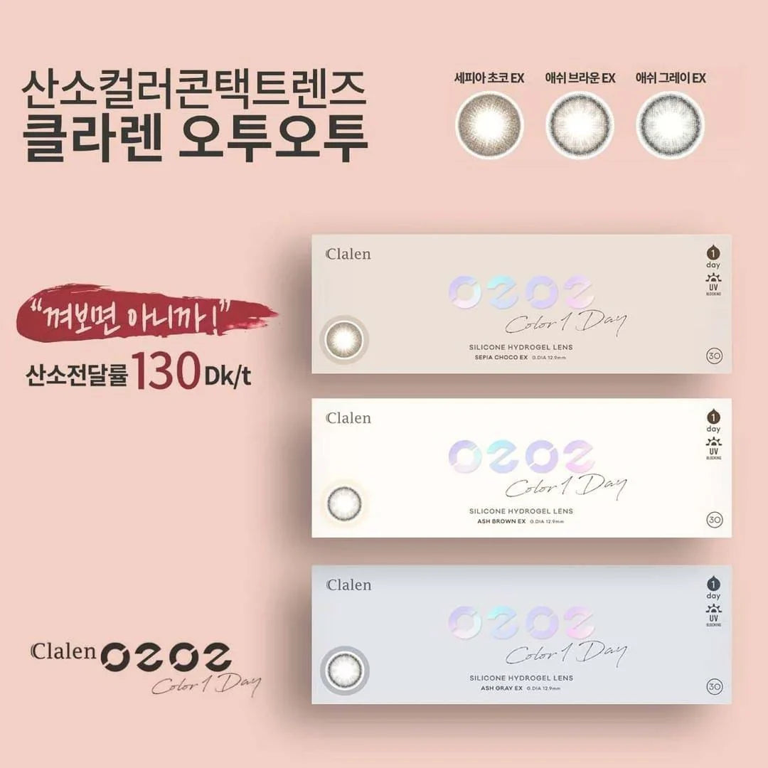 Elevate your look with Clalen O2O2 Color 1-Day Ash Brown EX. These 30-pack daily disposables feature a 14.2 mm lens diameter and 12.9 mm graphic diameter with layered ash brown tones for subtle depth and enlargement. Silicone hydrogel delivers 45% water content comfort and UV-blocking protection..