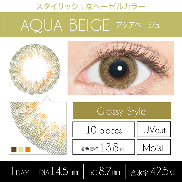 Hazel base washed with aqua-beige for a sheer, glassy look. A soft 13.8 mm ring and fine dot gradient add depth without harsh edges.