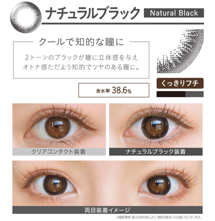A classic 2-tone black lens with a gently blurred limbal ring and a translucent center. The soft dot gradient blends with your iris, creating clean definition and convincing enlargement (G.DIA 13.8 mm) without a harsh “sticker” look.