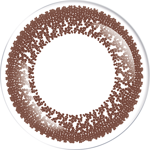 Milk-chocolate halo with a defined limbal edge; 13.6 mm G.DIA for doll-eye depth and a crisp pupil.