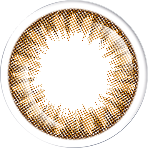 Two-tone brown with soft golden spokes and a neat limbal ring. The compact 12.9 mm graphic (14.2 mm DIA) adds bright depth and gentle, natural enlargement.