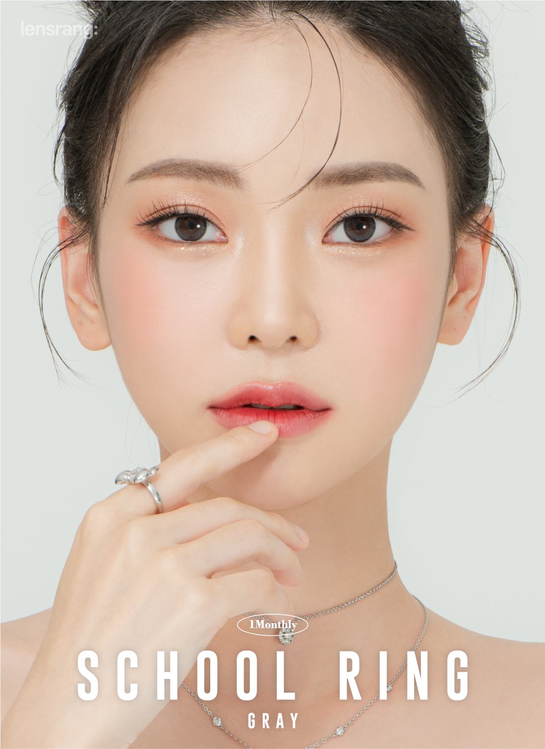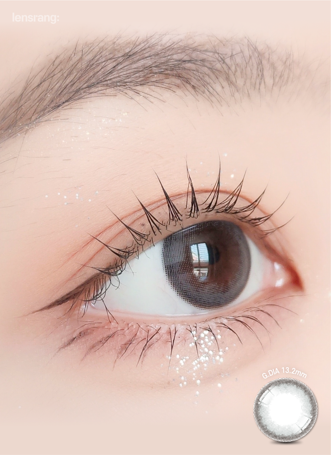 Smoky gray with a clean “school ring” limbal ring sharpens the iris outline for clear, defined eyes. The 13.2 mm graphic enlarges gently for daily wear.