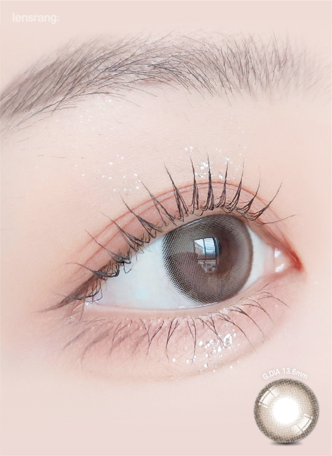Sugar Cream ash-choco monthly lens with a fine dotted rim and 13.6 mm graphic diameter for warm, latte-brown eyes and soft, natural enlargement.