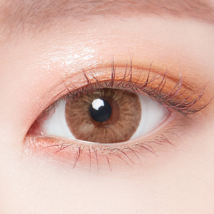 Golden-brown burst with a soft ring brightens the iris. 13.7 mm graphic on 14.2 mm DIA for a clear, wearable glow daily PC-Silicone comfort.
