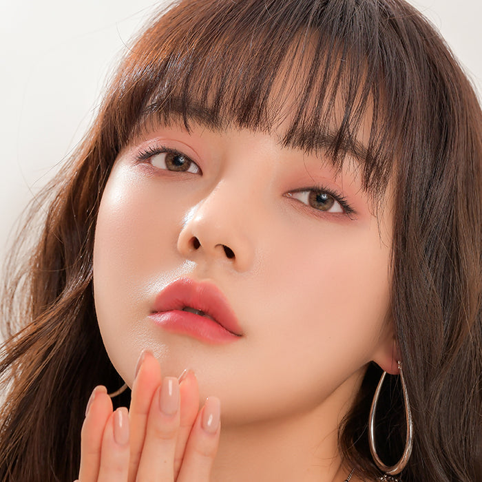 Warm tea-brown mesh over a soft beige center with a feathered ring. The 13.3 mm graphic enlarges naturally for a chic, everyday glow on dark or light eyes.