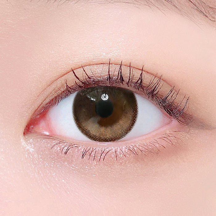Bold brown limbal ring in a fine dot-matrix with a clear inner zone. The wide 13.5 mm graphic on a 14.5 mm lens creates a clean “big-eye” look that stays glossy and natural in real life and photos.