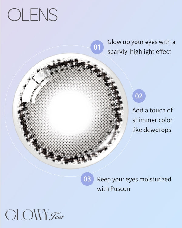 Glowy Tear Brown lenses showcase OLENS’ signature dual-zone architecture: a bright inner tear highlight surrounded by a soft brown rim, all pixel-fused within a precise 13.3 mm graphic circle. This design catches and refracts light like dew on the eye, creating multidimensional depth and a natural, luminous sparkle without harsh edges.