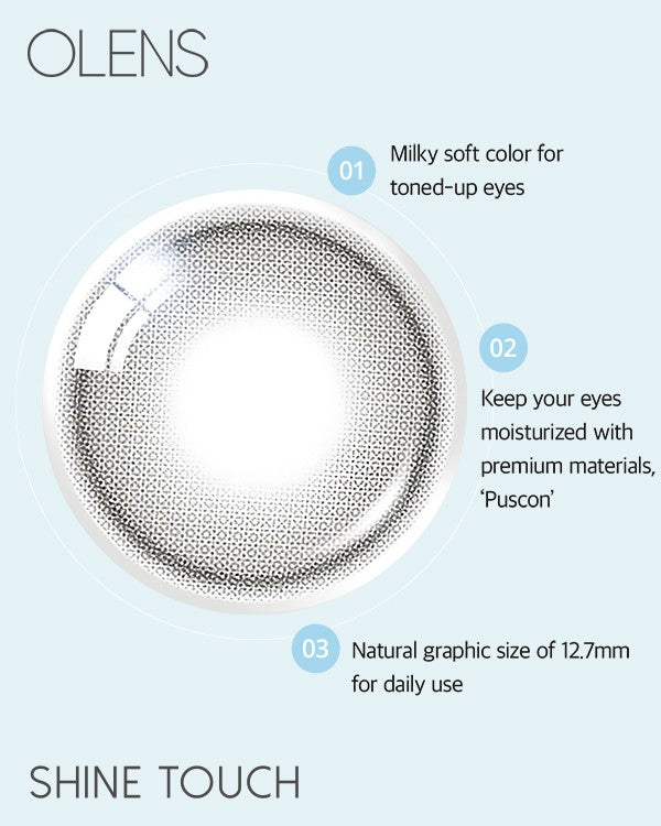 Touch and shine—sweeten up your eyes with Shine Touch Milky Gray. A smooth milky-gray tone paired with a natural graphic design and 12.7 mm pattern size for a clean, toned-up look.