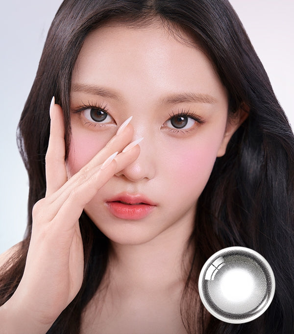Elevate your look with OLENS Big Glowy Gray Monthly colored contact lenses. These monthly lenses feature a glossy highlight pattern and a distinct outer circle that catch the light for an instant tone up effect. At a 13.6mm graphic diameter, they subtly enlarge the iris to boost your big-eye appeal while maintaining a natural look. The soft glowy gray shade blends brown and silver undertones, adding depth and a modern cool-toned radiance that complements any makeup or outfit.