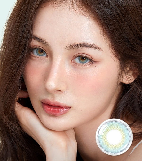 OLENS 1-Day French Shine Aqua lenses fuse advanced PUSCON hydrogel and 48% hydration with a luminous gold-tinted aqua gradation, precise dimensions for natural enlargement, a daily disposable 10 pack format, and a broad prescription range for radiant, comfortable wear.