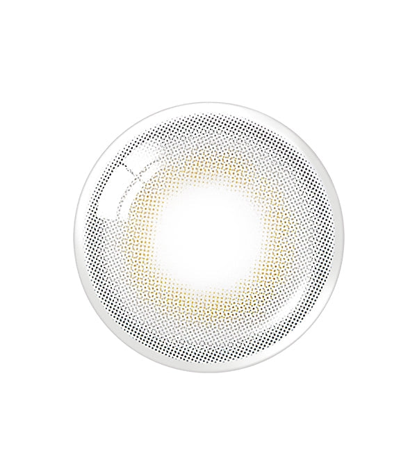 French Shine Gray Monthly lenses showcase a soft ash-gray base layered with a delicate gold-tinted gradation that blends seamlessly into a subtle halo, using a 13.2 mm graphic diameter and faint limbal definition to create an understated, luminous depth.
