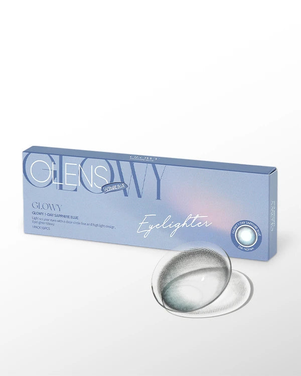 Glowy 1-Day Sapphire Blue pairs a reflective eyelighter sheen with a neat outer ring. Its 13.1 mm graphic and Puscon build deliver a clean, luminous enlargement that stays comfortable for all-day wear.
