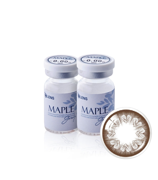Maple Gray uses a two-tone gray palette over a large, softly edged 13.8 mm graphic, giving luminous enlargement that reads defined yet gentle on dark irises.