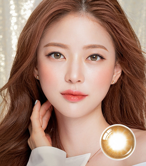 Pearl Day Gold Brown lights up dark irises with a soft choco rim and a luminous gold-pearl inner halo. The natural 13.0 mm graphic diameter gives gentle enlargement, while a translucent center and refined micro‑dot gradient melt into your own eye color for a clean, realistic sparkle—everyday brightening without a harsh limbal ring.